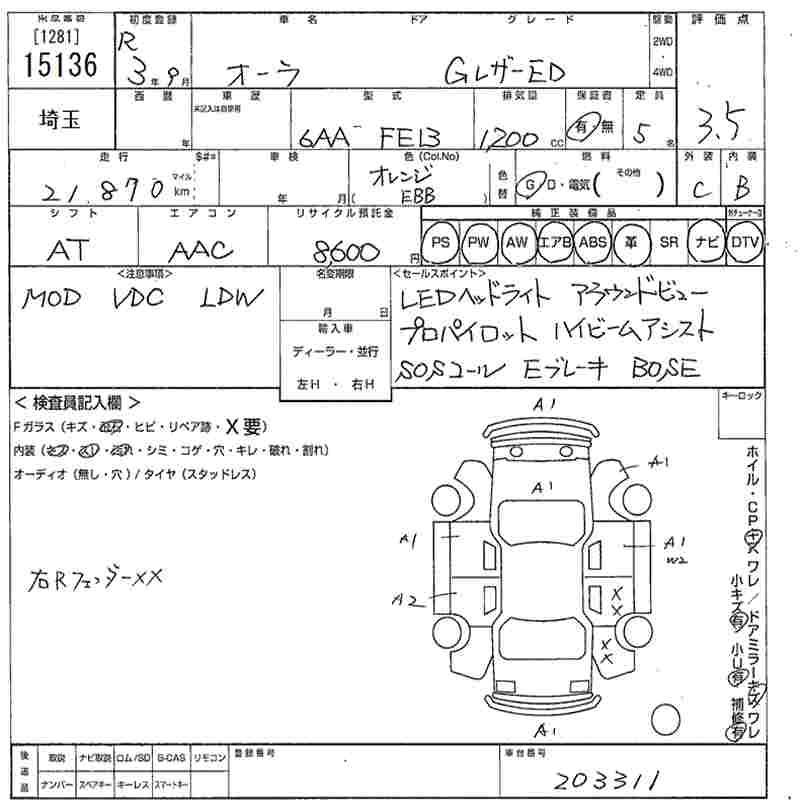 NISSAN AURA G LEATHER EDITION - лот 15136
