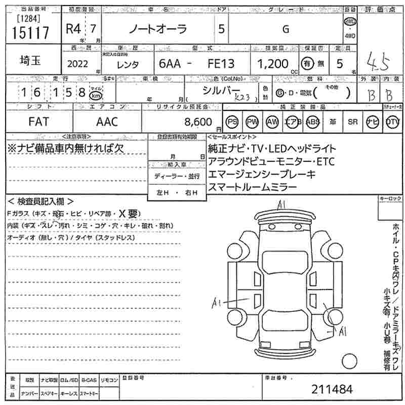 NISSAN AURA G - лот 15117