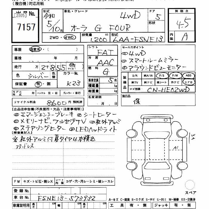 NISSAN AURA 4WD G Four - лот 7157