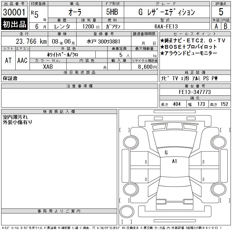NISSAN AURA G LEATHER EDITION - лот 30001