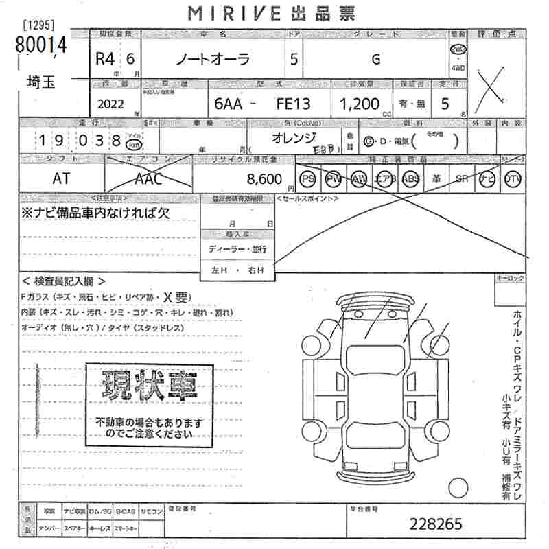 NISSAN AURA G - лот 80014