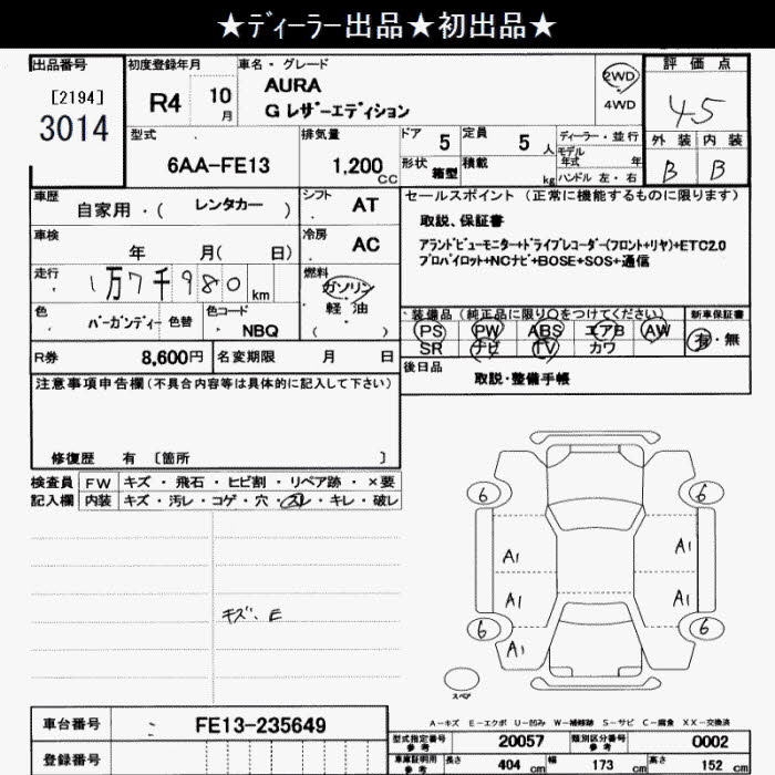 Все аукционы NISSAN AURA