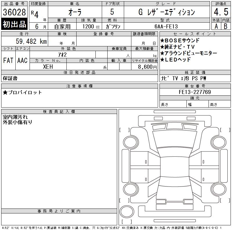 NISSAN AURA G LEATHER EDITION - лот 36028