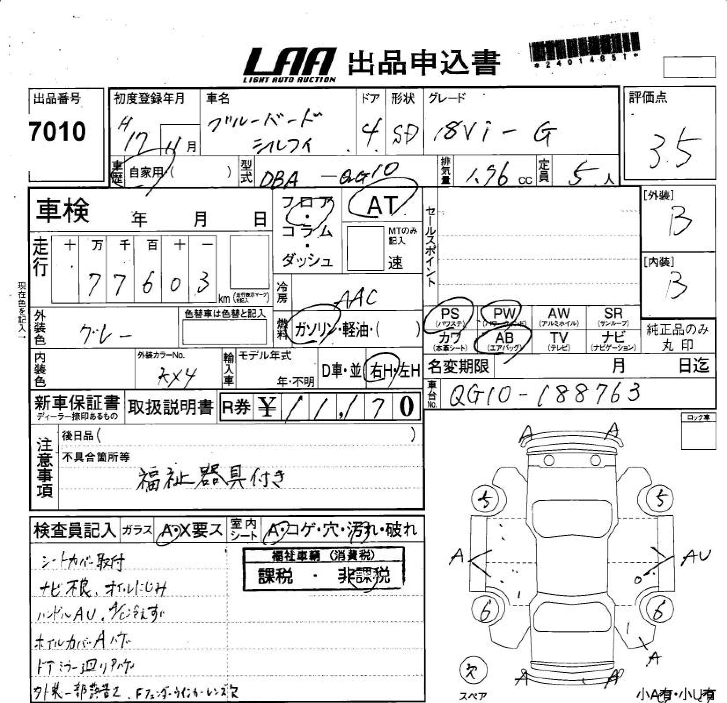 NISSAN BLUEBIRD SYLPHY - лот 7010