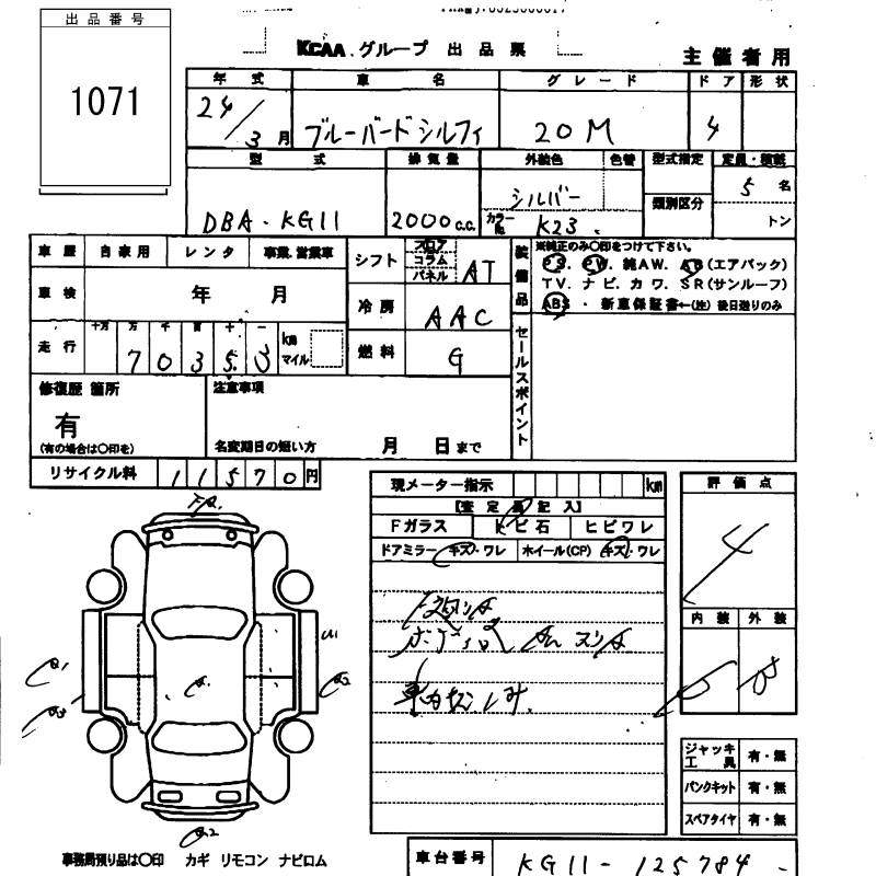 NISSAN BLUEBIRD SYLPHY 20M - лот 1071