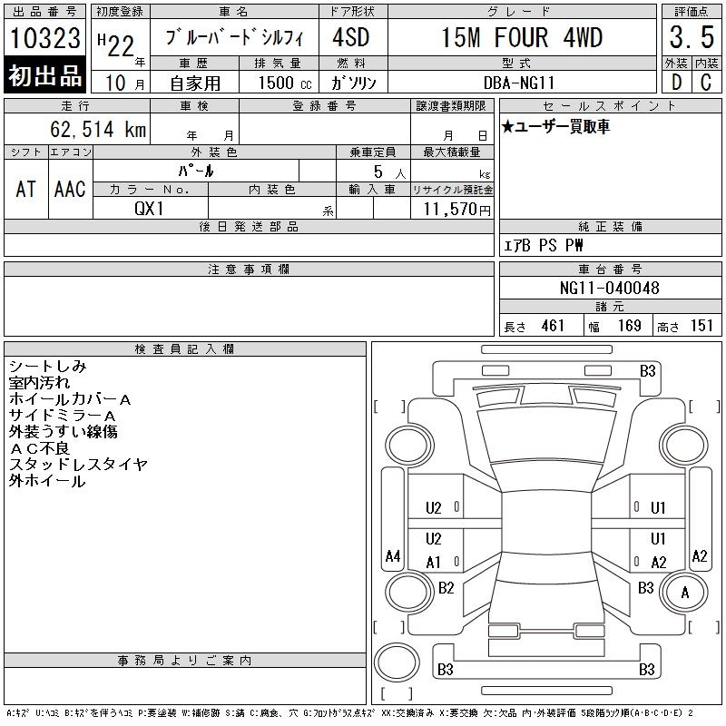 NISSAN BLUEBIRD SYLPHY 15M FOUR 4WD - лот 10323