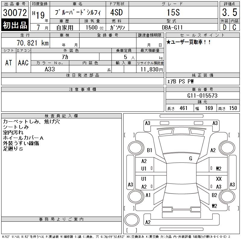 NISSAN BLUEBIRD SYLPHY 15S - лот 30072
