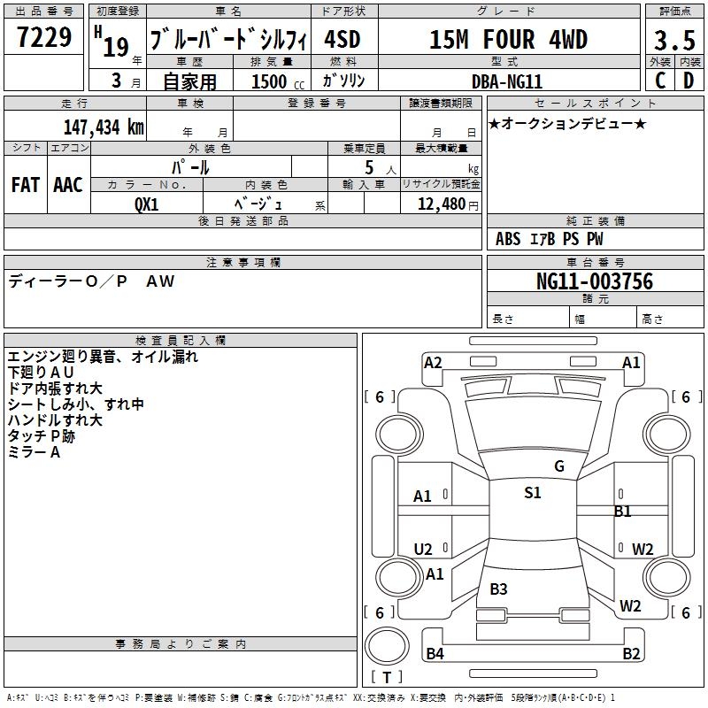 NISSAN BLUEBIRD SYLPHY - лот 7229