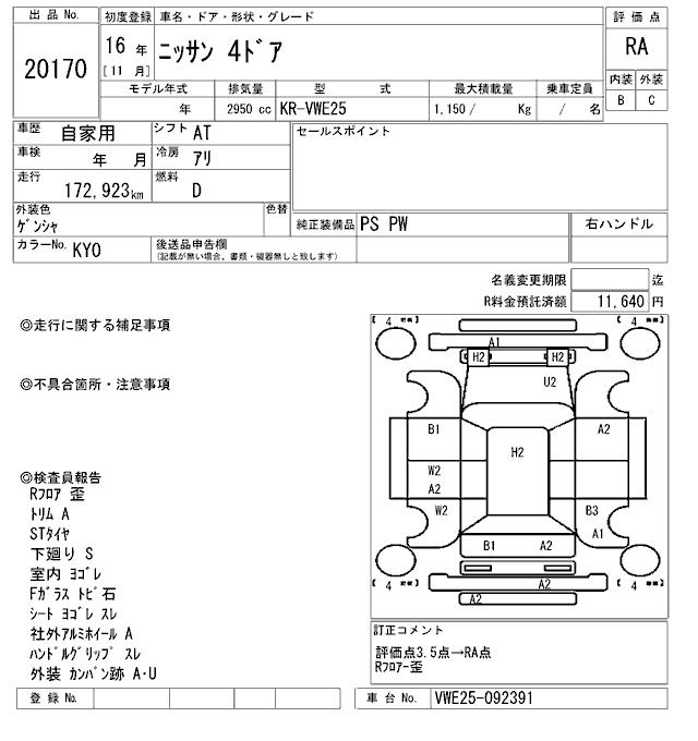 NISSAN CARAVAN VAN - лот 20170