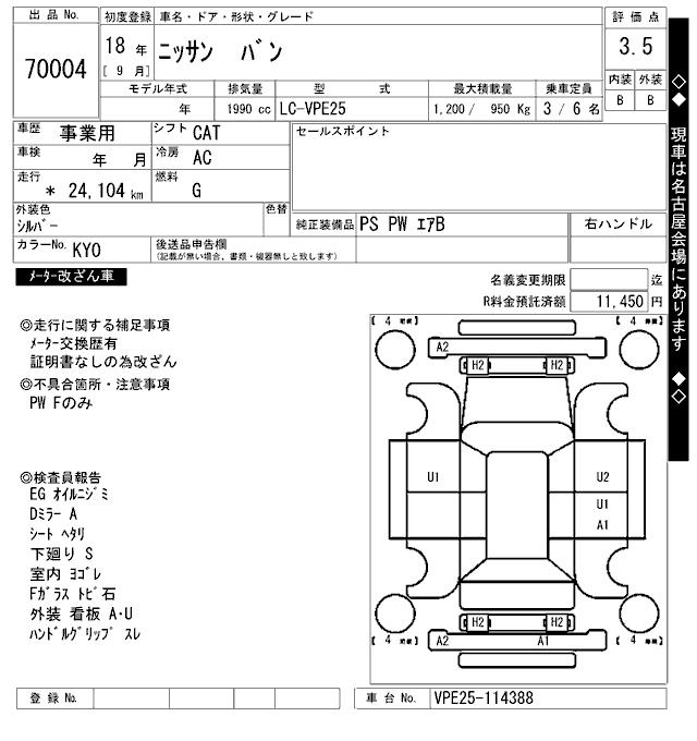 NISSAN CARAVAN VAN - лот 70004