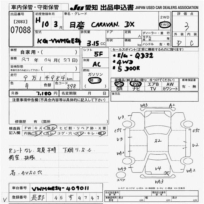 NISSAN CARAVAN VAN - лот 7088