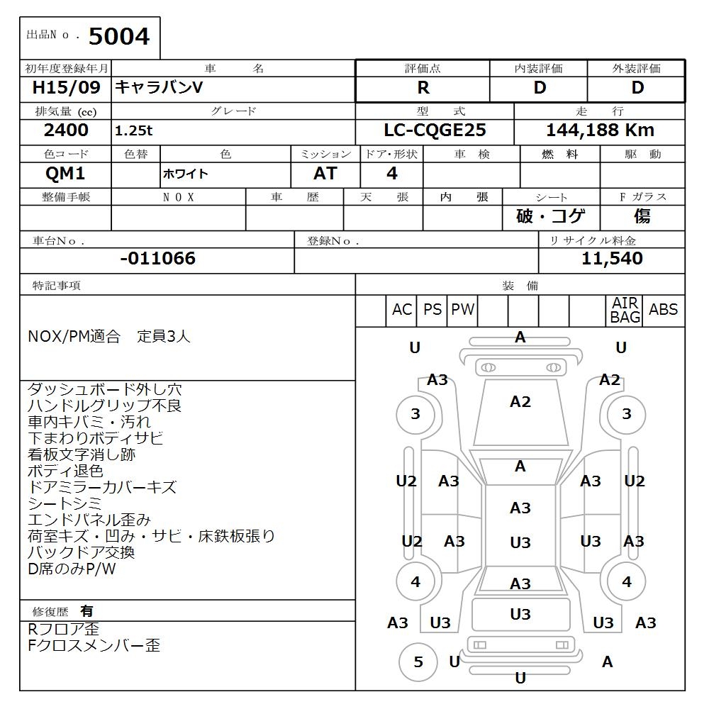 NISSAN CARAVAN VAN - лот 5004