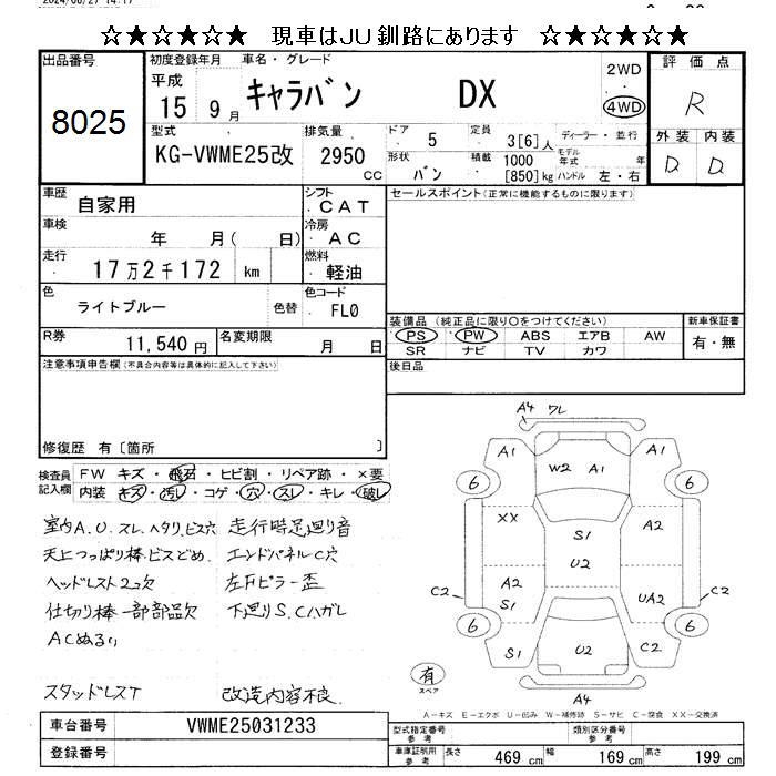 NISSAN CARAVAN VAN 4WD DX - лот 8025