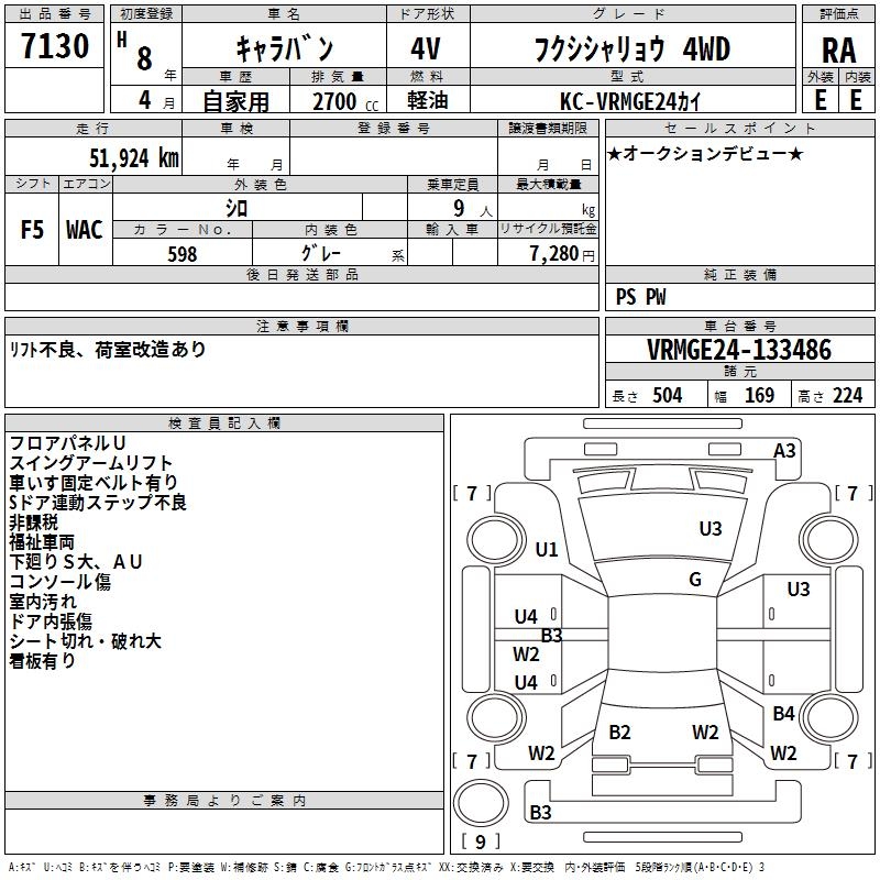 NISSAN CARAVAN WELLFARE CAR 4WD - лот 7130