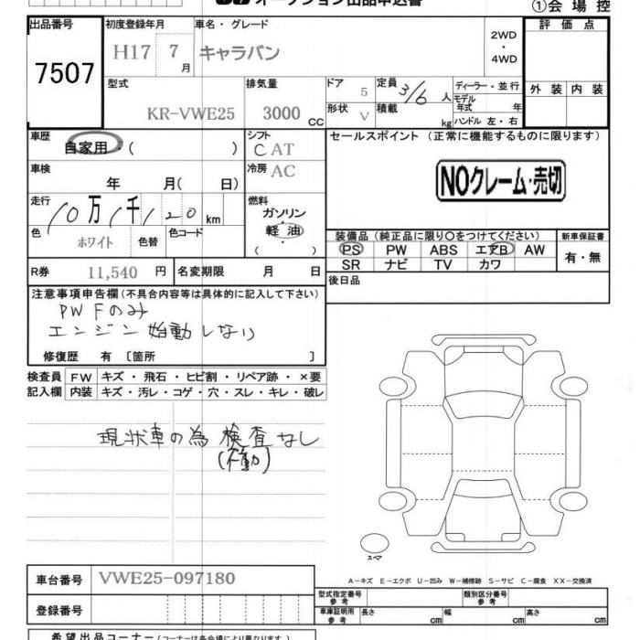 Все аукционы NISSAN CARAVAN