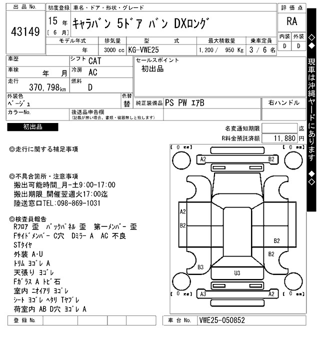 NISSAN CARAVAN DX LONG - лот 43149