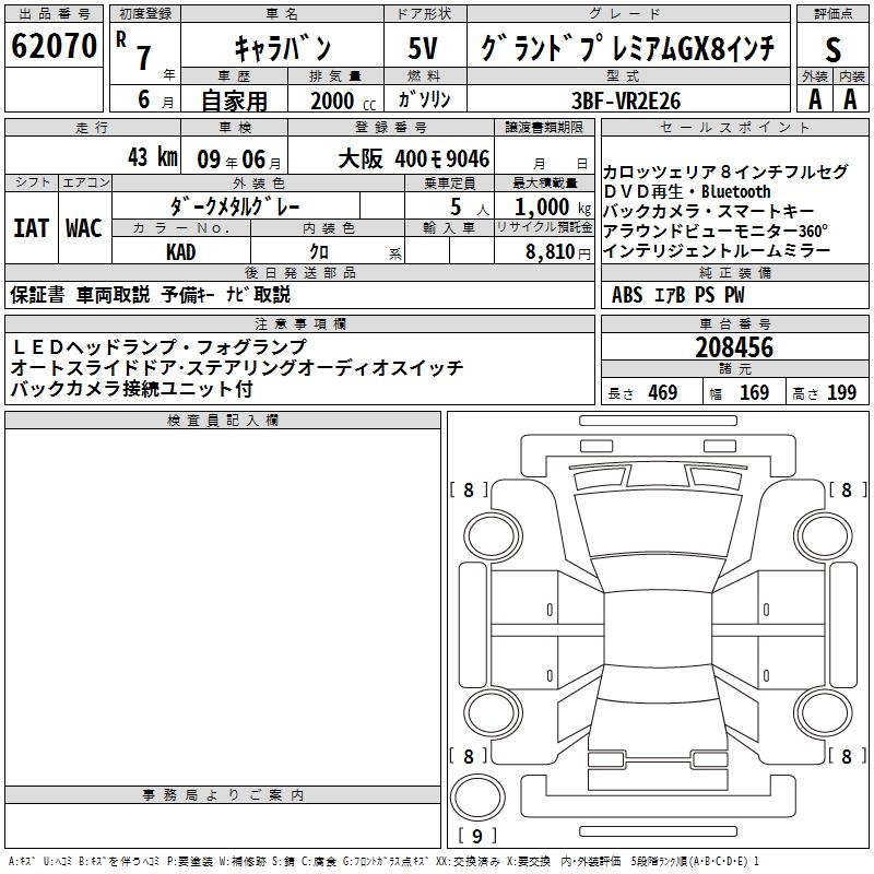 NISSAN CARAVAN GRAND PREMIUM GX8 INCH - лот 62070
