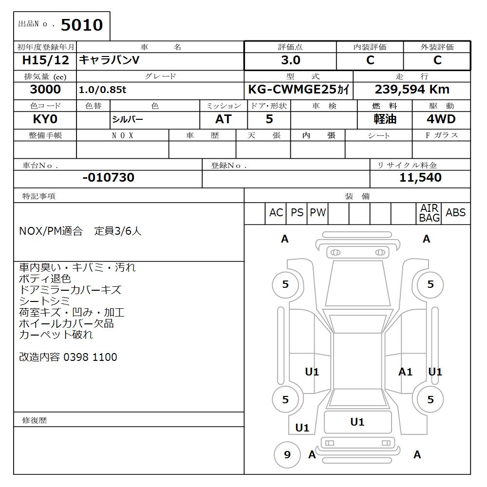 NISSAN CARAVAN 1.0/0.85t - лот 5010