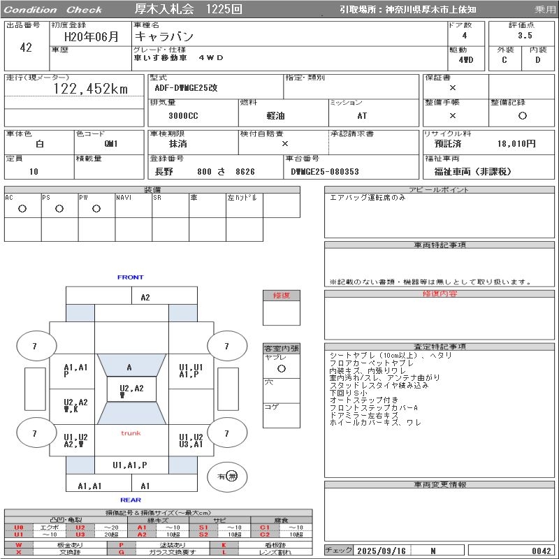 NISSAN CARAVAN WHEELCHAIR MOVEMENT CAR 4WD - лот 42
