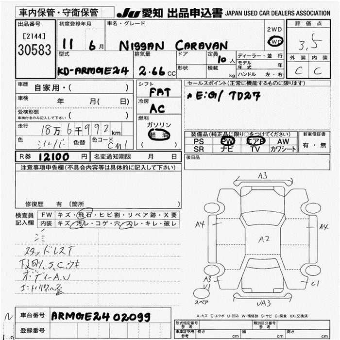 NISSAN CARAVAN WAGON - лот 30583