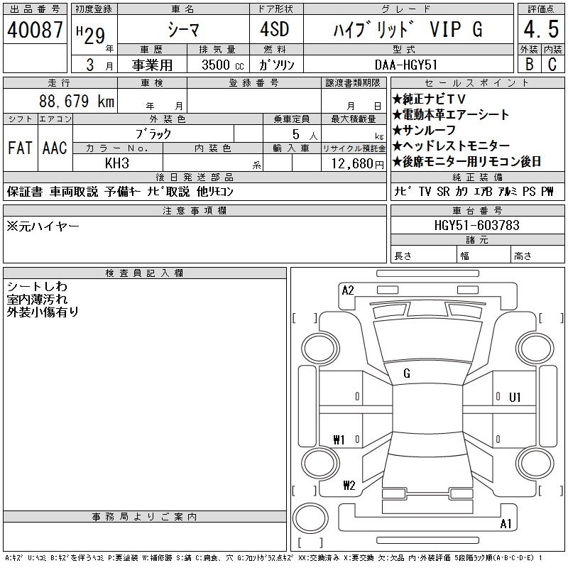 NISSAN CIMA HYBRID VIP G - лот 40087
