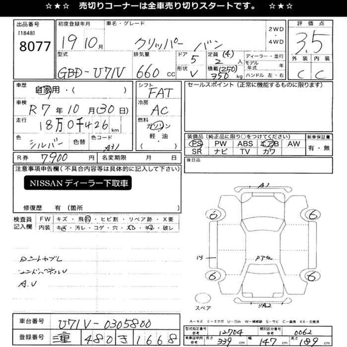 NISSAN CLIPPER VAN - лот 8077