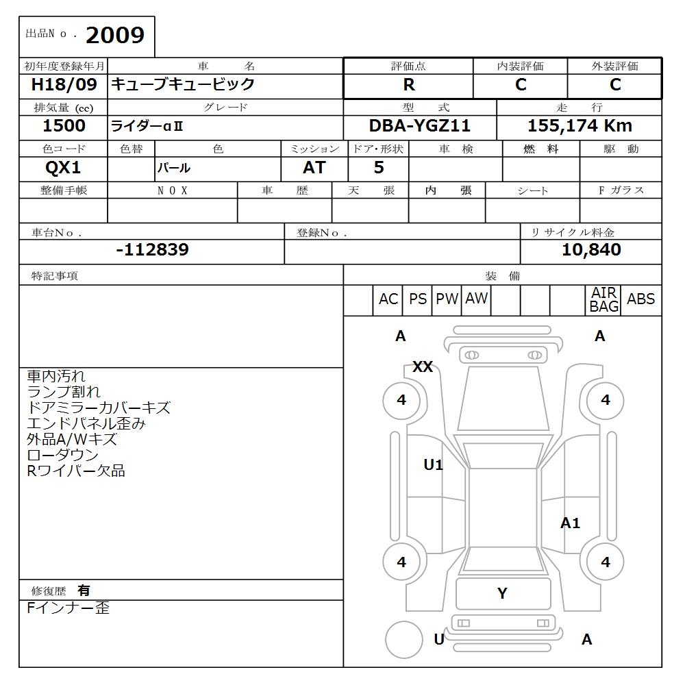 NISSAN CUBE CUBIC - лот 2009