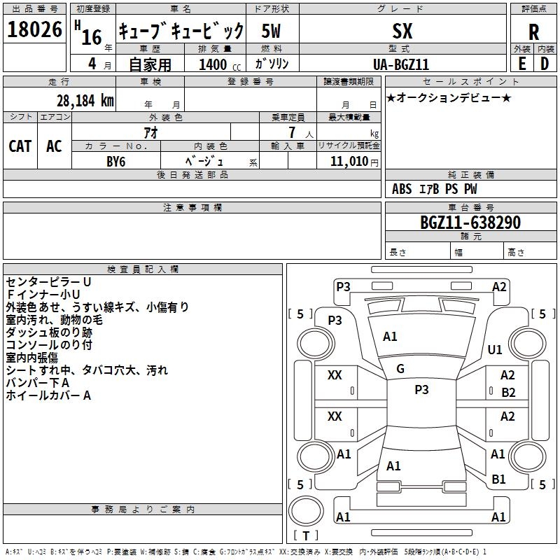 NISSAN CUBE CUBIC SX - лот 18026