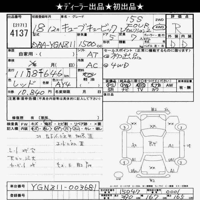 NISSAN CUBE CUBIC 4WD 15S FOUR V SELECTION 2 - лот 4137