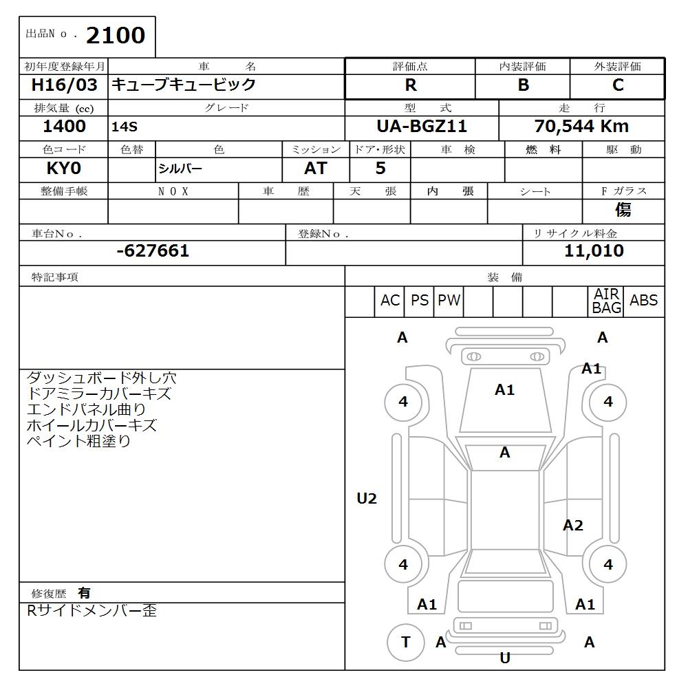 NISSAN CUBE CUBIC 14S - лот 2100