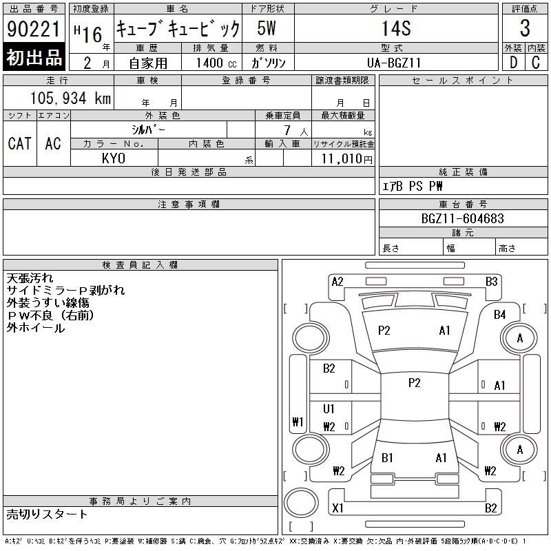 NISSAN CUBE CUBIC 14S - лот 90221
