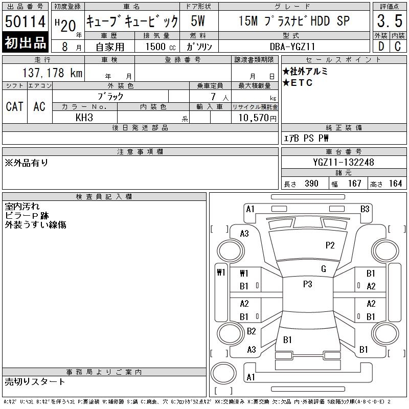 NISSAN CUBE CUBIC 15M PLUS NAVIGATION HDD SP - лот 50114
