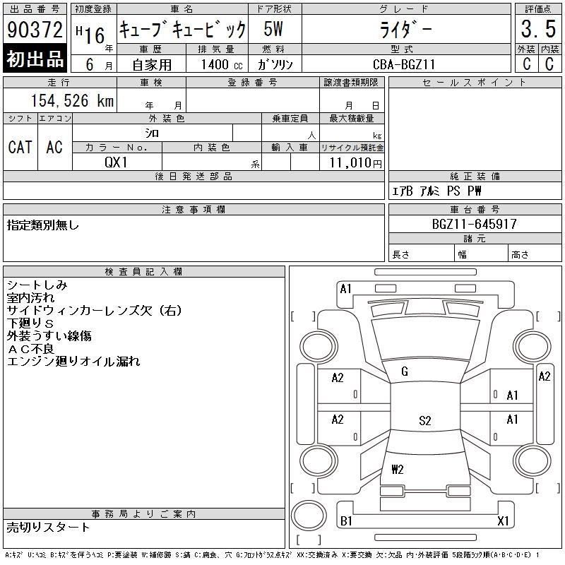 Все аукционы NISSAN CUBE CUBIC