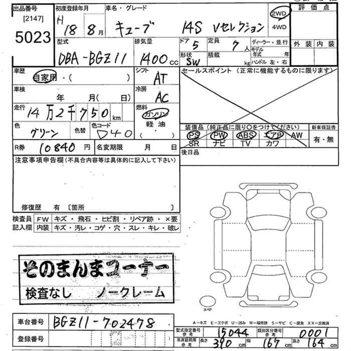 NISSAN CUBE CUBIC 14S V SELECTION - лот 5023