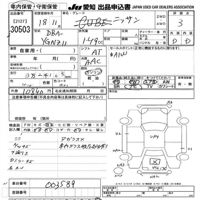 NISSAN CUBE CUBIC - лот 30503