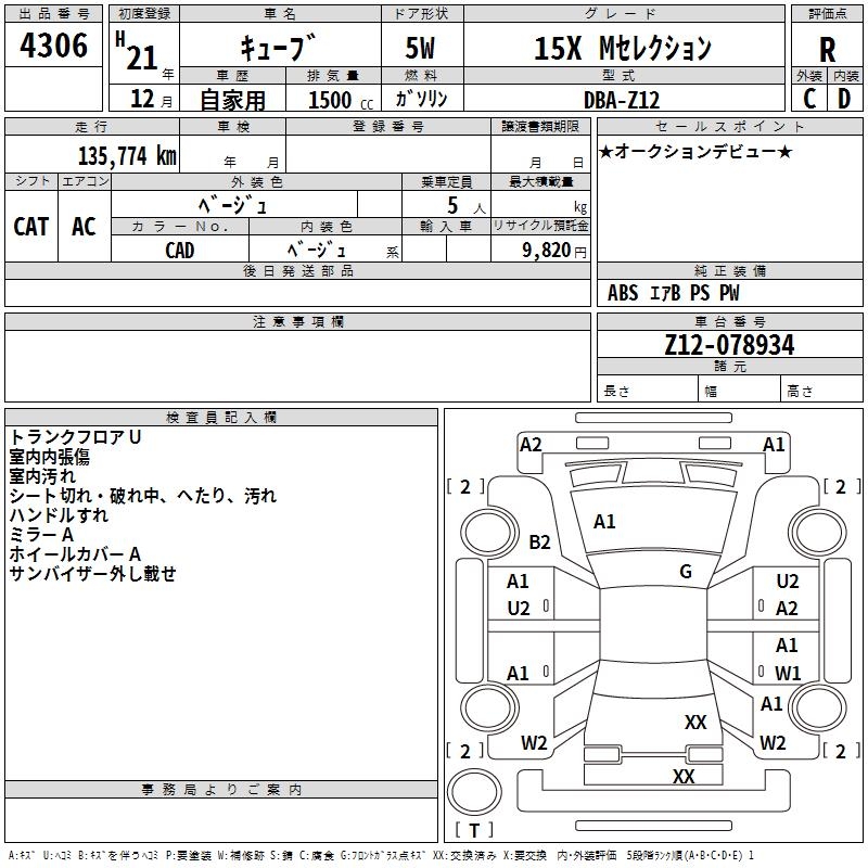 NISSAN CUBE - лот 4306