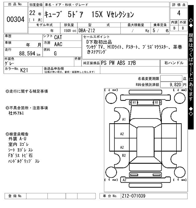NISSAN CUBE - лот 304