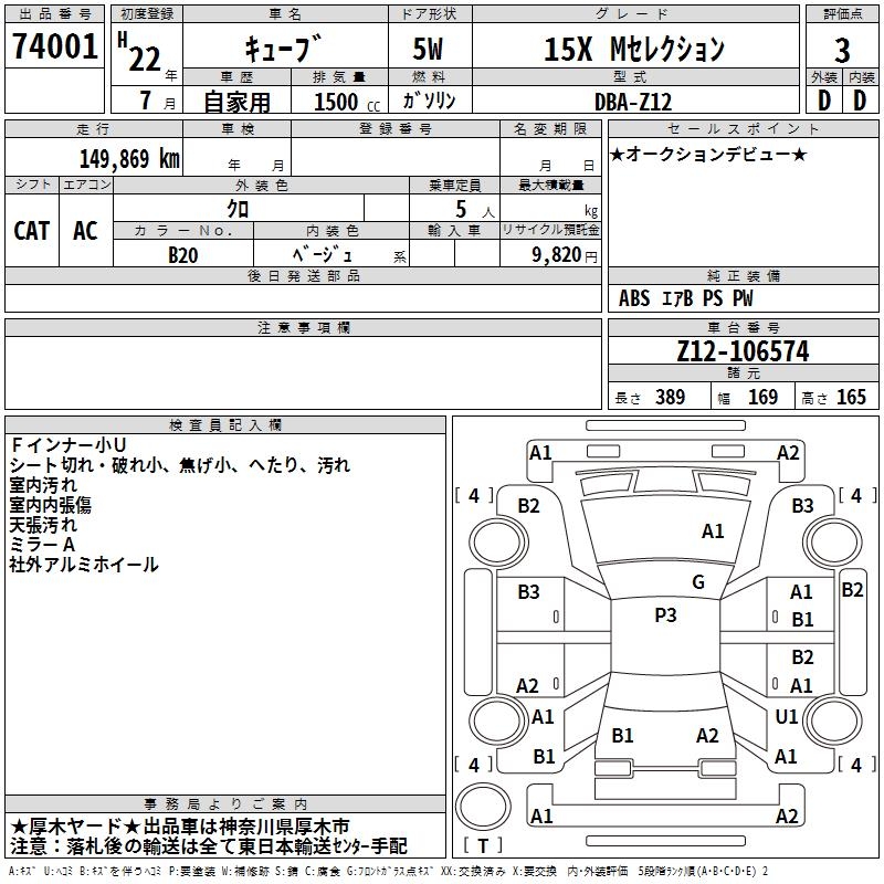 NISSAN CUBE 15X M selection - лот 74001