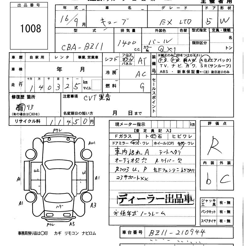 NISSAN CUBE - лот 1008
