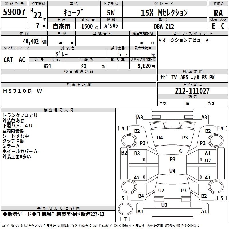 NISSAN CUBE - лот 59007