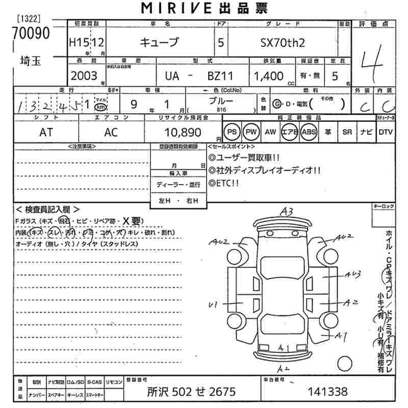 NISSAN CUBE - лот 70090