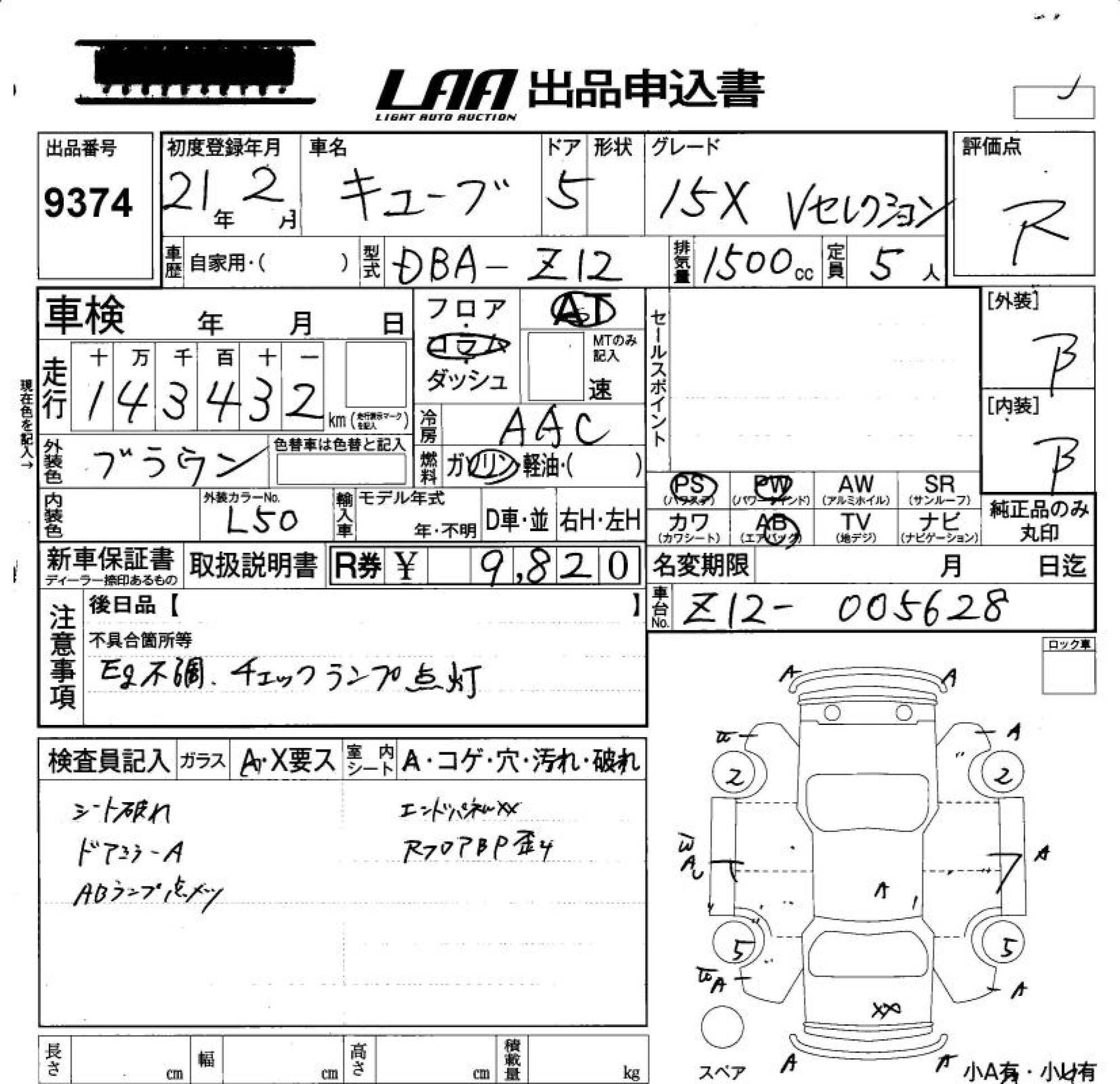 NISSAN CUBE - лот 9374