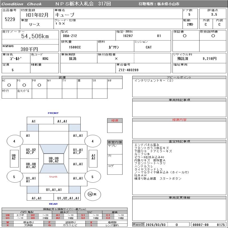 Все аукционы NISSAN CUBE