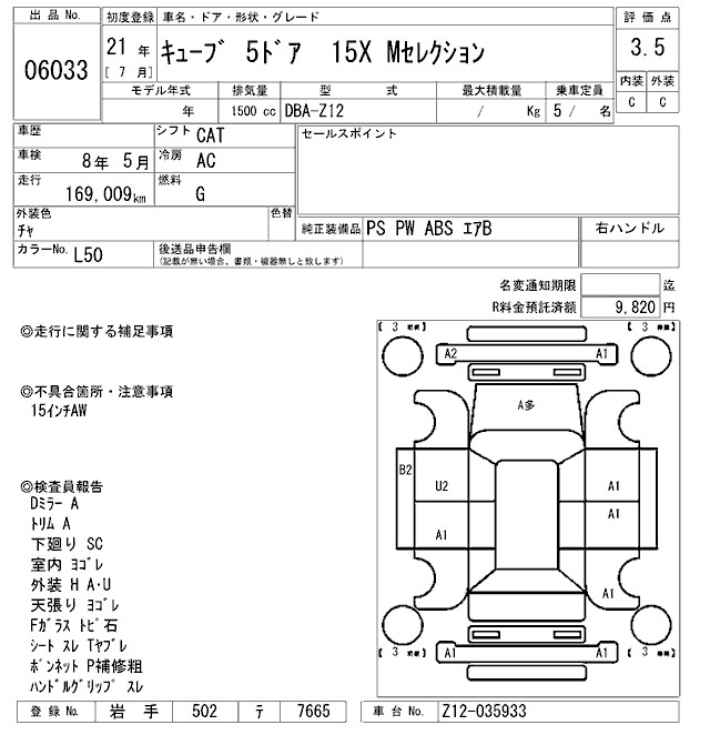 NISSAN CUBE - лот 6033