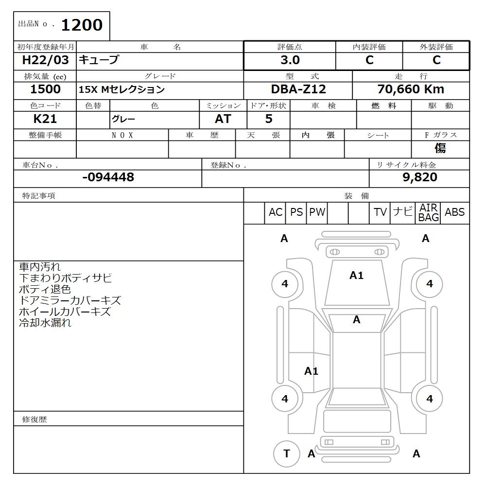 NISSAN CUBE - лот 1200