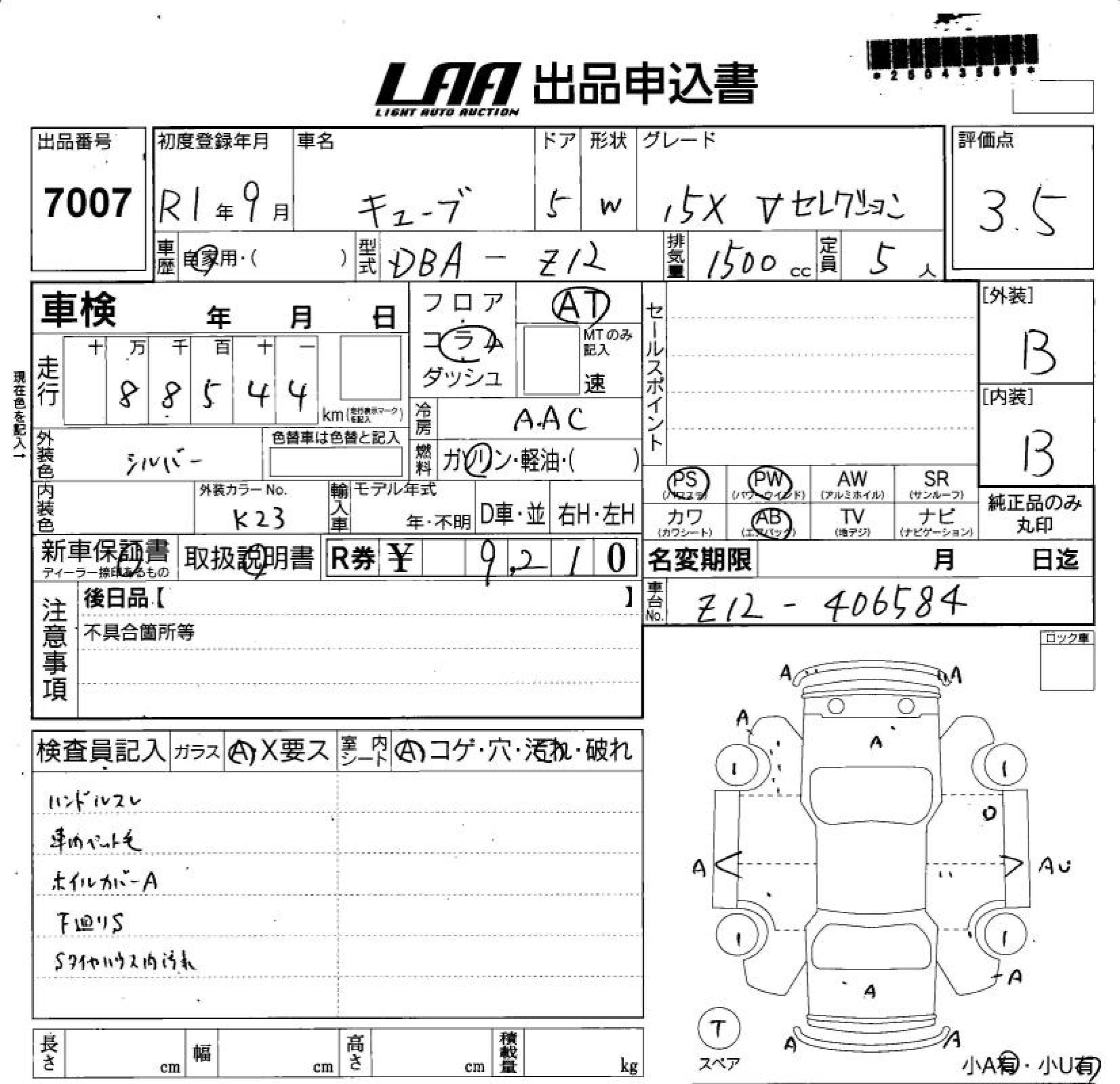 NISSAN CUBE - лот 7007