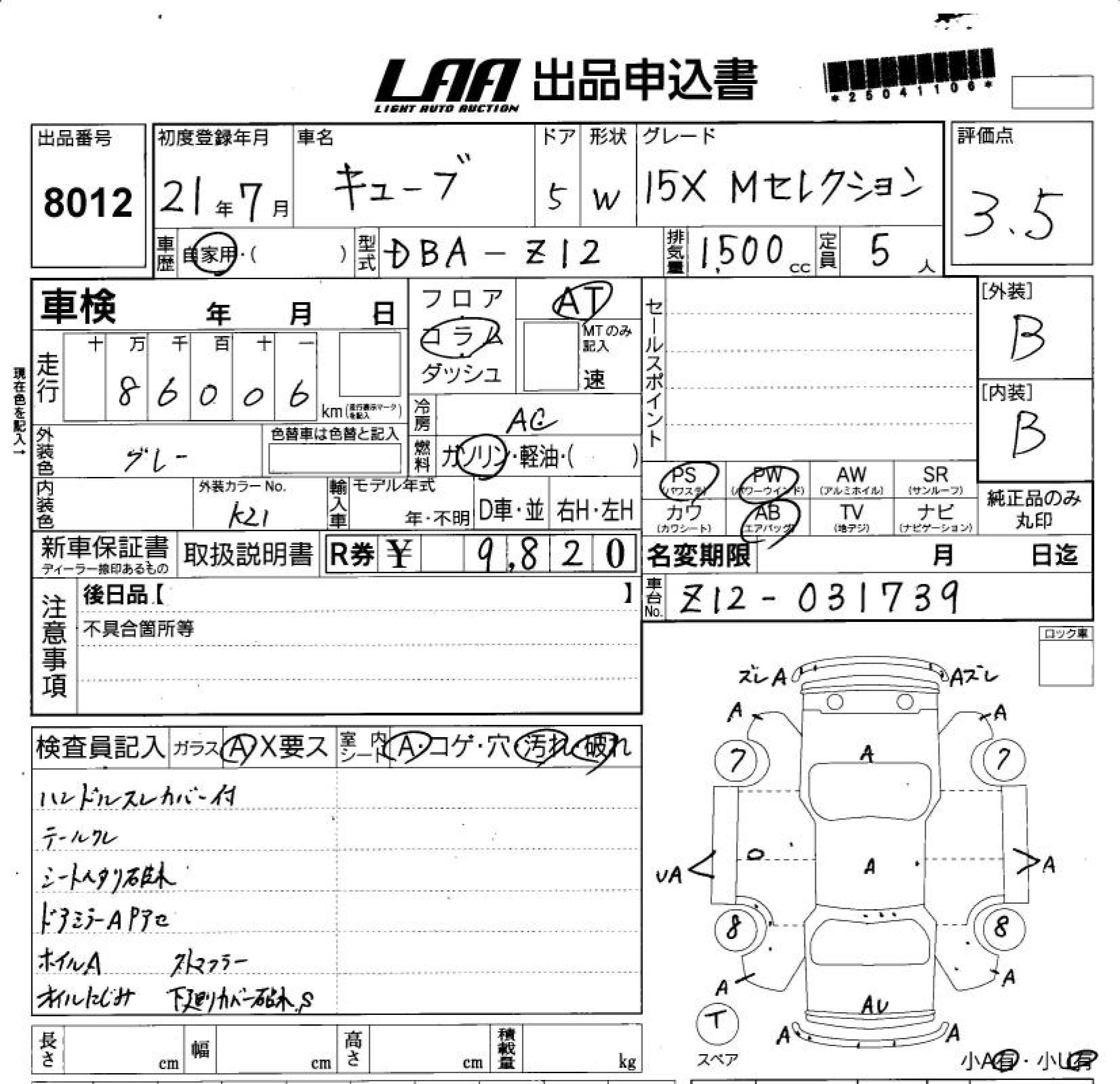 Все аукционы NISSAN CUBE