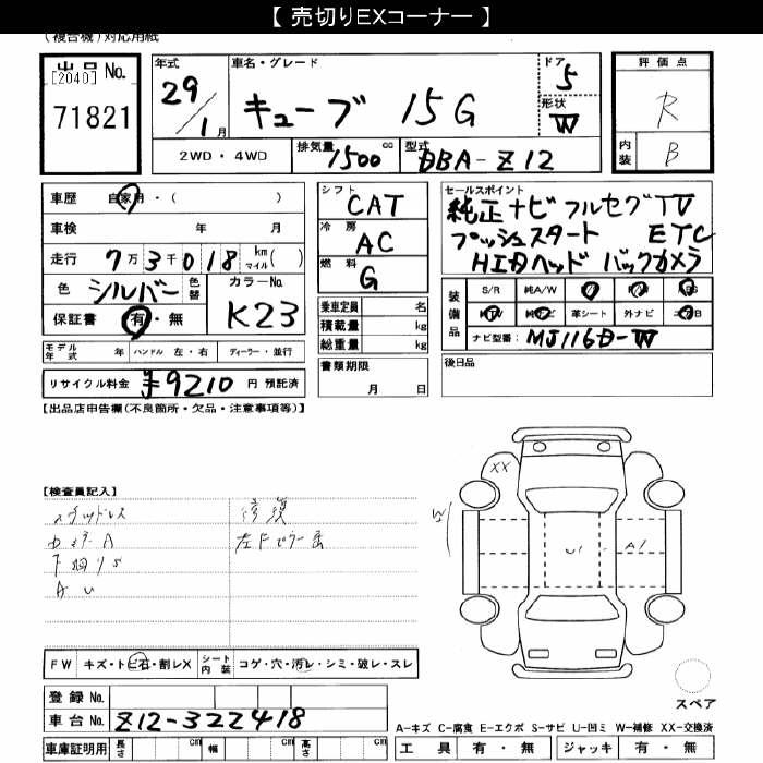 NISSAN CUBE - лот 71821
