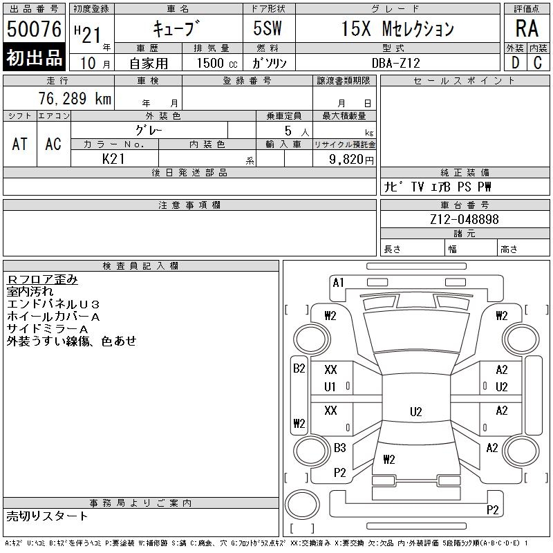 NISSAN CUBE - лот 50076