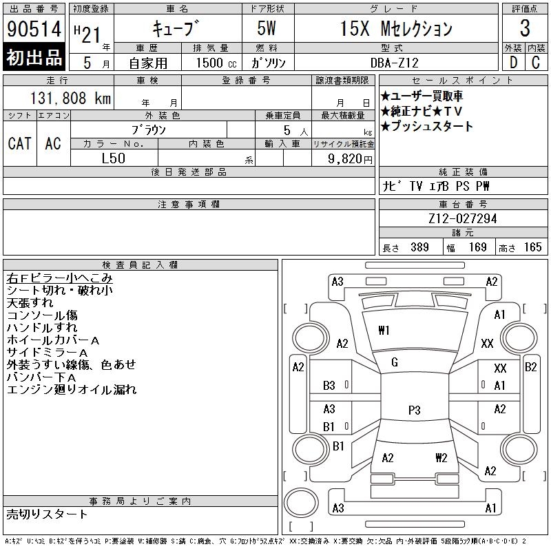 Все аукционы NISSAN CUBE